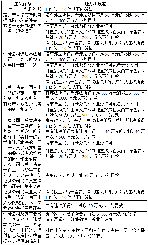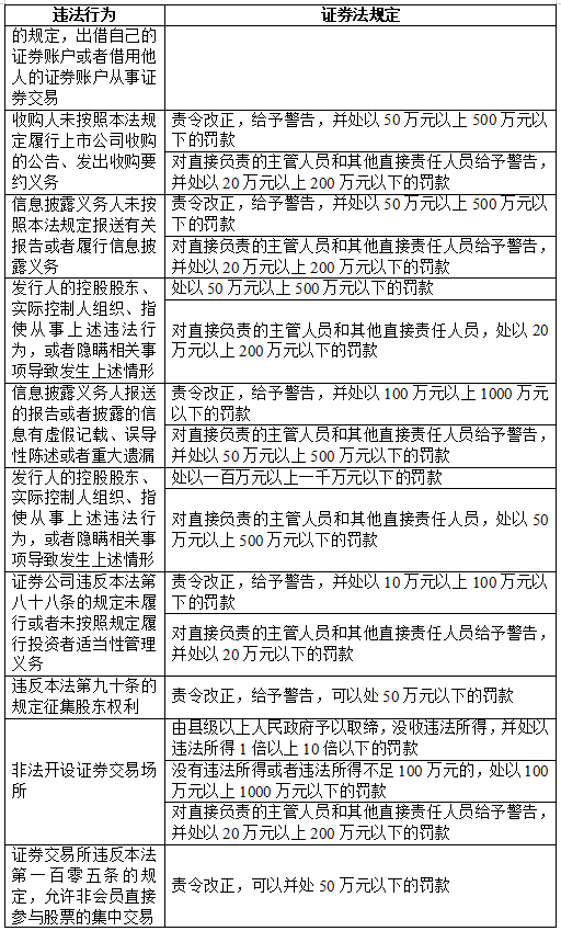 五、证券相关违法行为罚则速查表