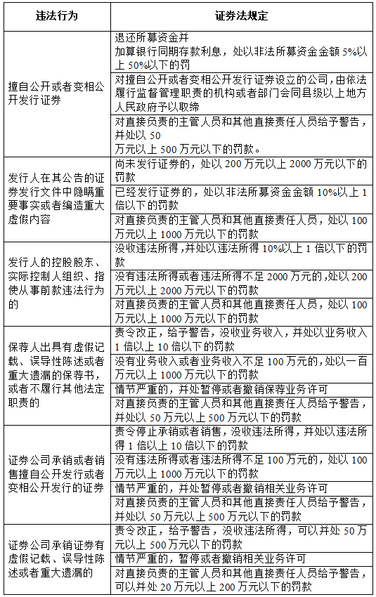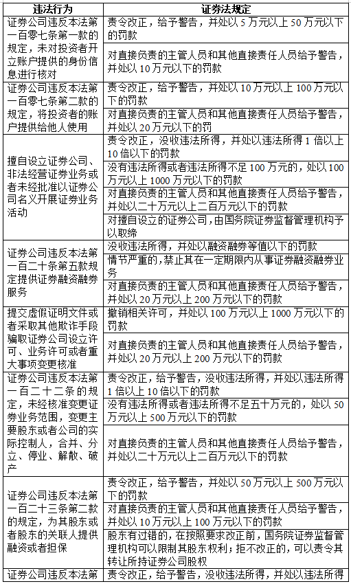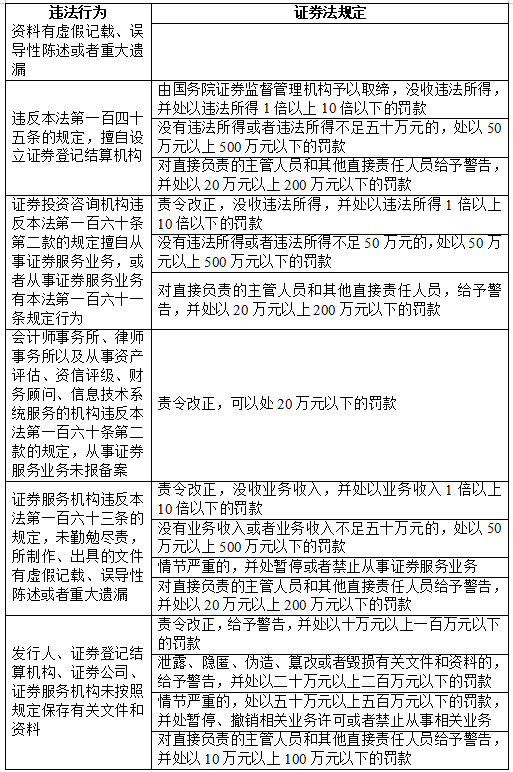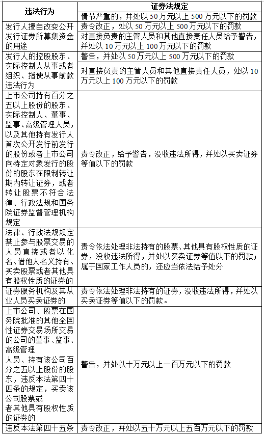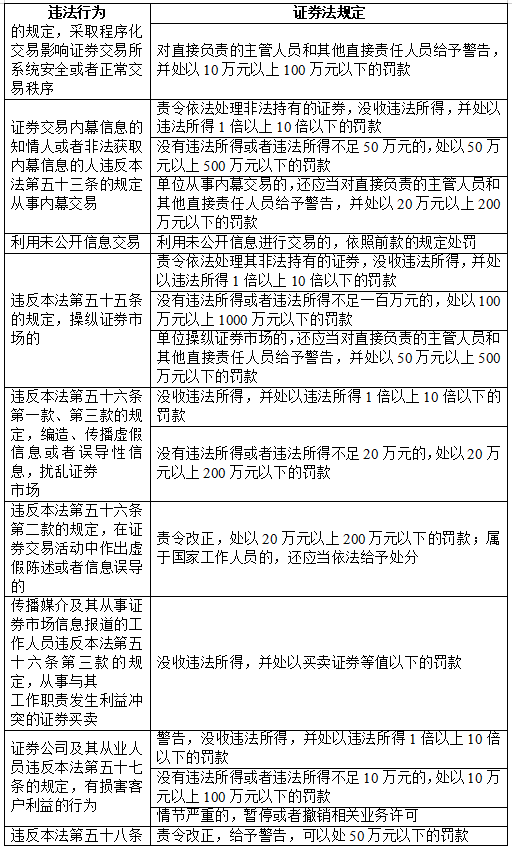 五、证券相关违法行为罚则速查表